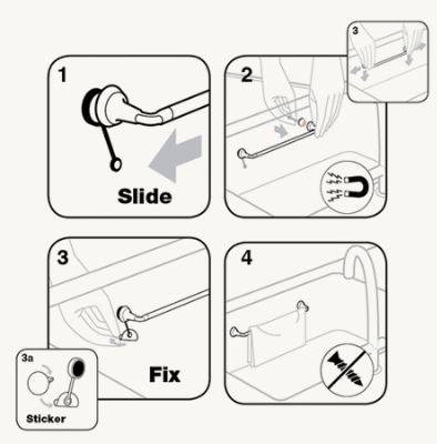 Den monteres enkelt inne i vasken med sterke magneter og en motmagnet på baksiden av vasken. Installasjonen tar under ett minutt – helt uten verktøy.